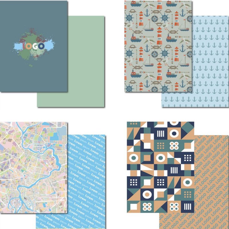 - Лицевая сторона может быть с индивидуальным макетом, оборотная — только с паттерном (базовым элементом орнамента, частью узора/логотипом, повторяющимся многократно в художественном оформлении ткани).