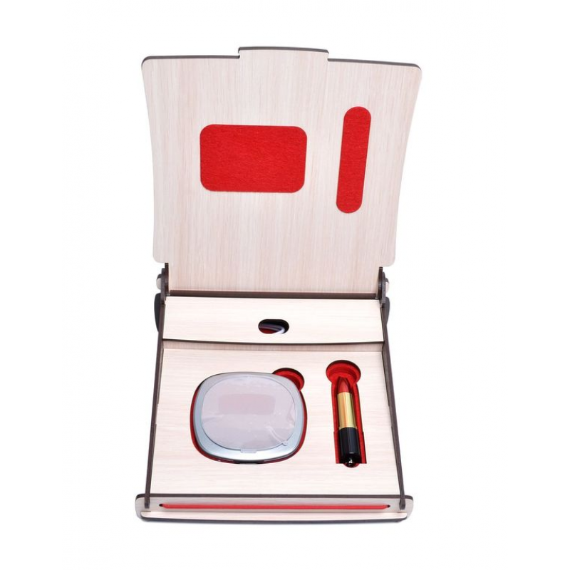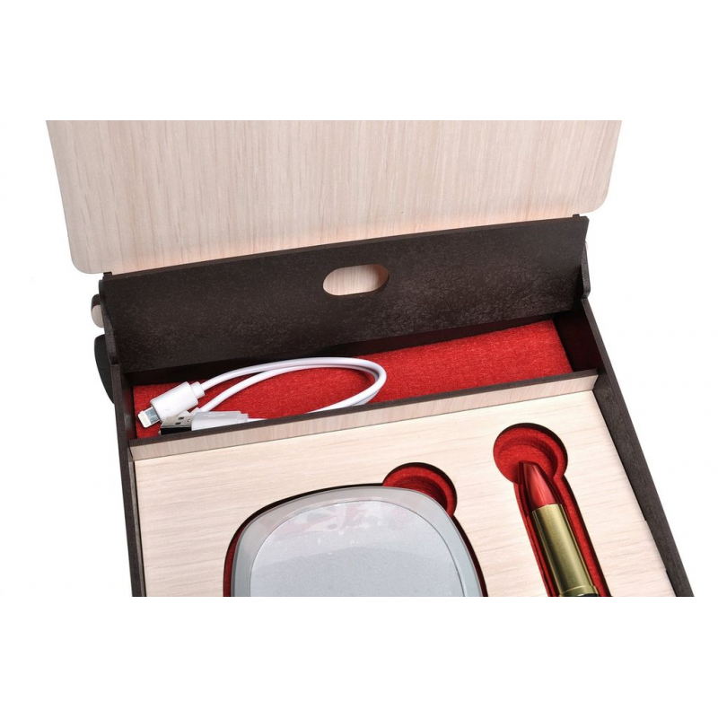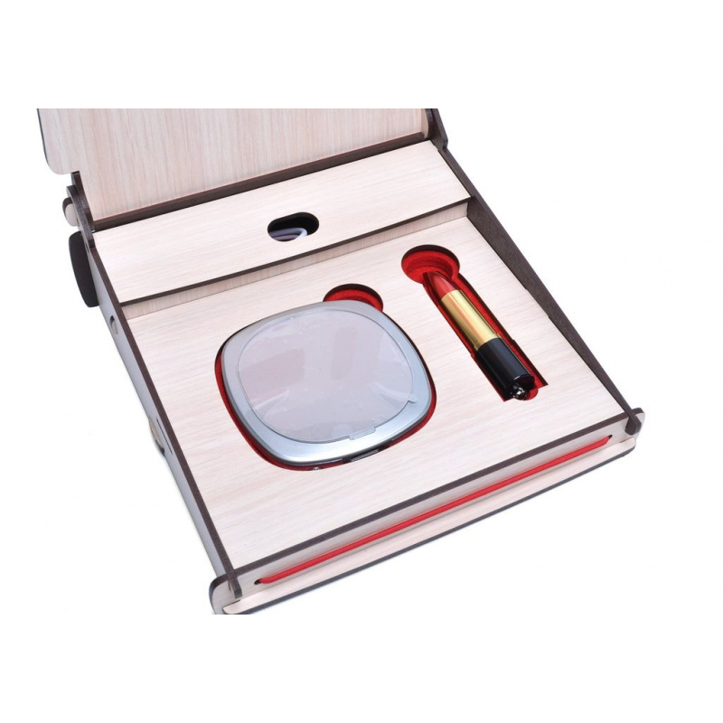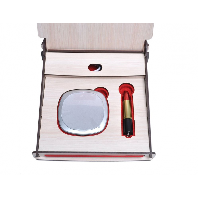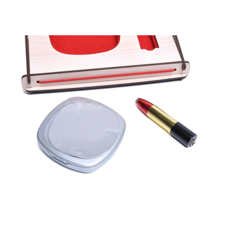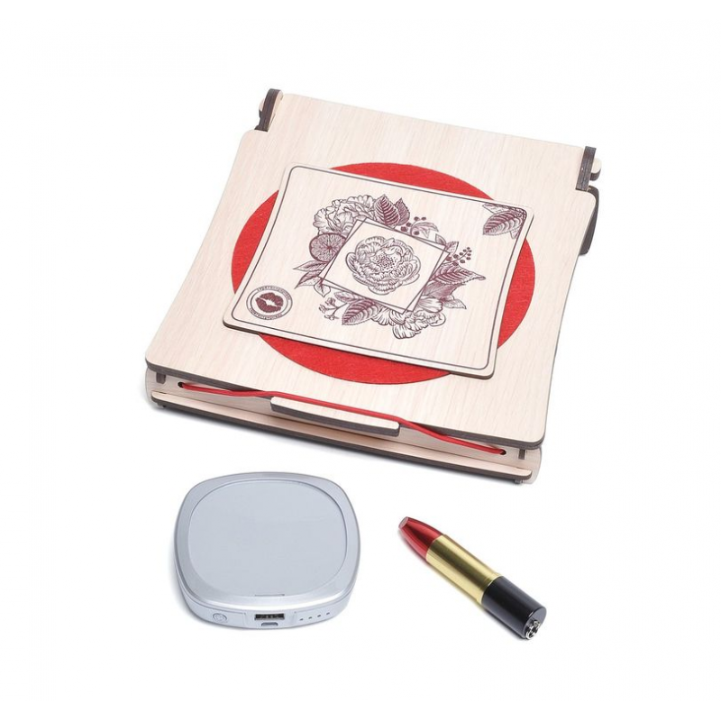 Нежный, элегантный и функциональный подарок для современной женщины. Зарядное устройство сделано в виде зеркальца, что даст женщине уверенность в своей неотразимости и зарядит телефон, батарея которого села от непрерывных звонков поклонников. А маленькая флешка в виде помады надежно сохранит все важные женские секретики!