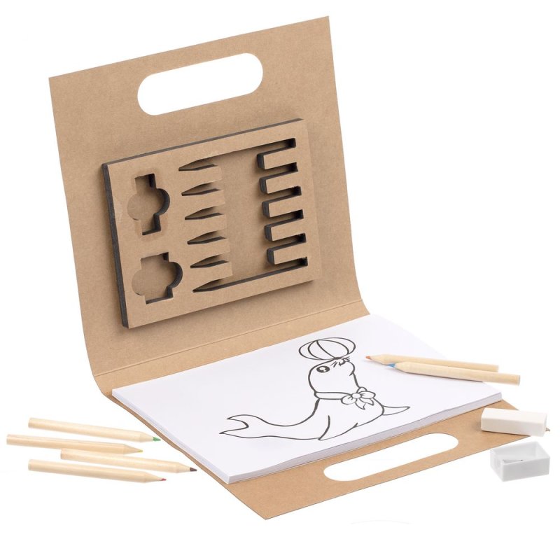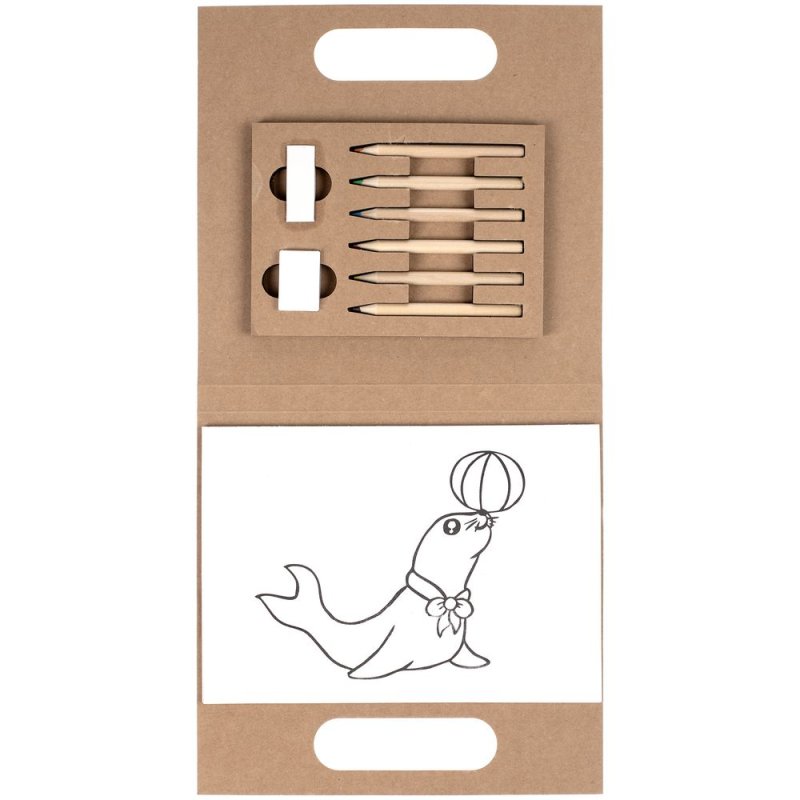 В комплекте раскраска, 6 цветных карандашей, ластик, точилка.