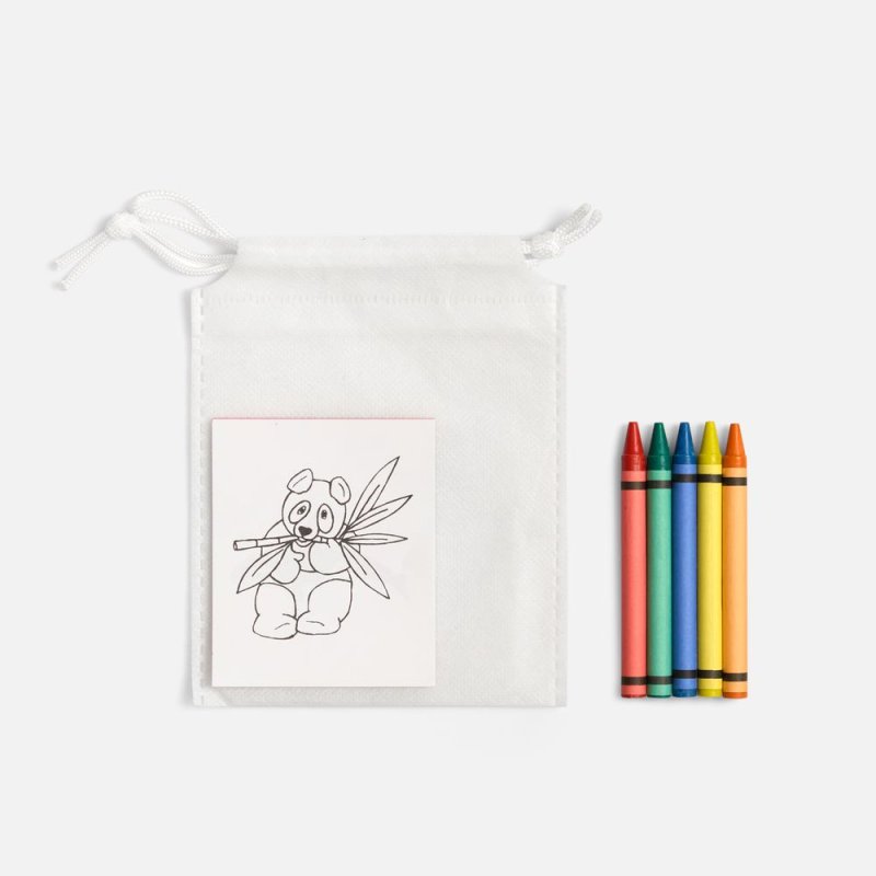 - Материал:раскраски - бумага; мелки - воск; мешочек - спанбонд, плотность 80 г/м²
