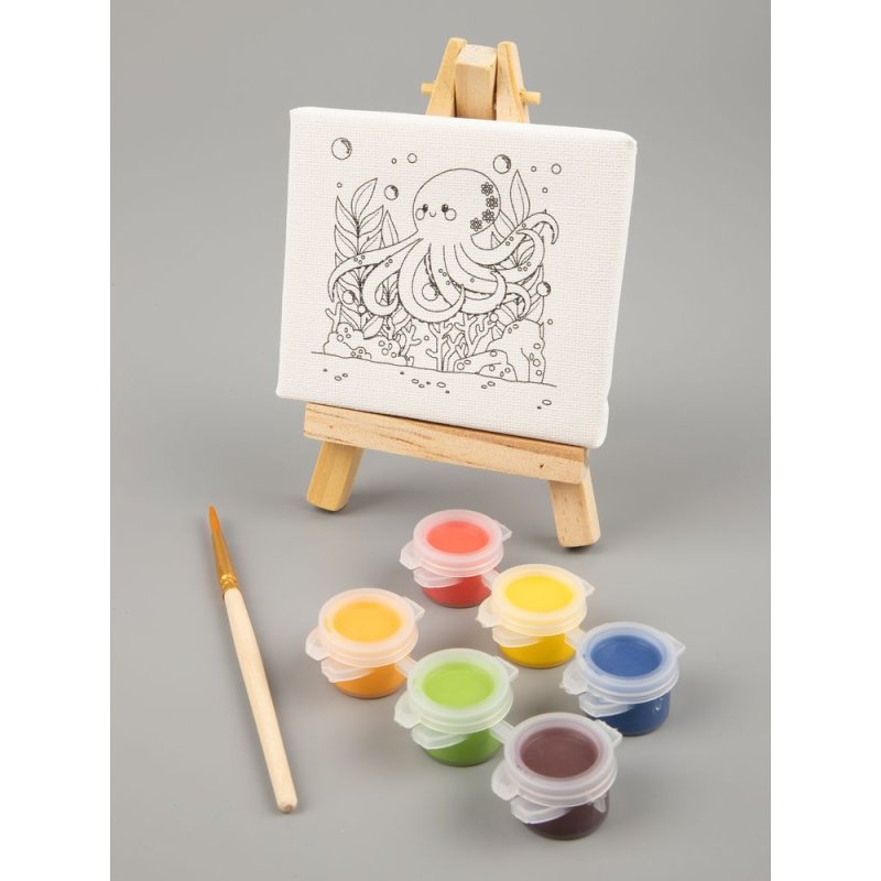 Набор для рисования Create поможет раскрыть талант художника. Мольберт, холст, кисточка и 6 красок — миниатюрный стартовый комплект. Для смелых можно оставить холст чистым, а для стесняющихся — нанести контур рисунка и раскрашивать.