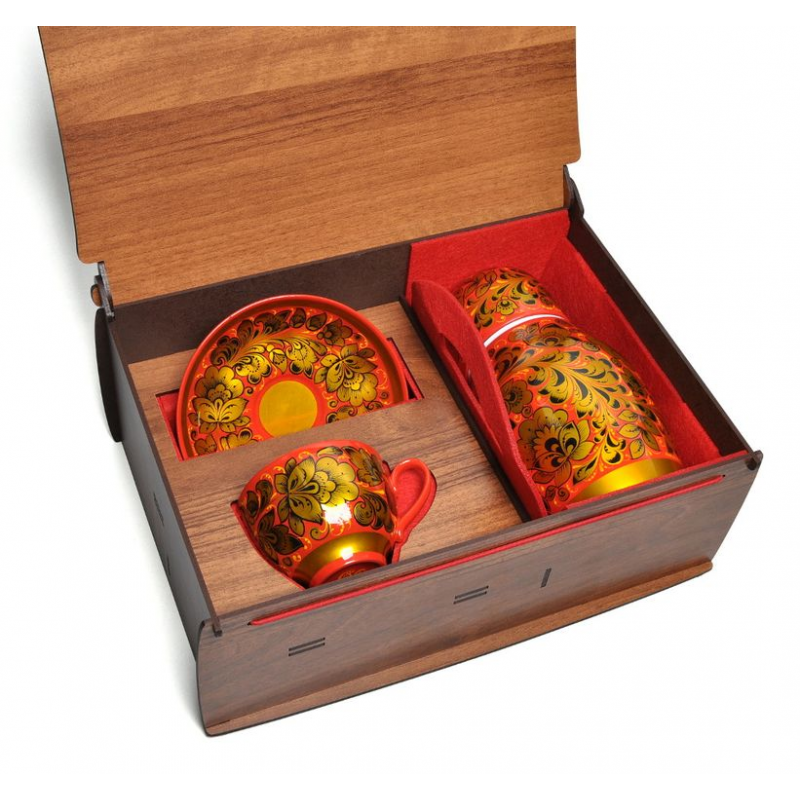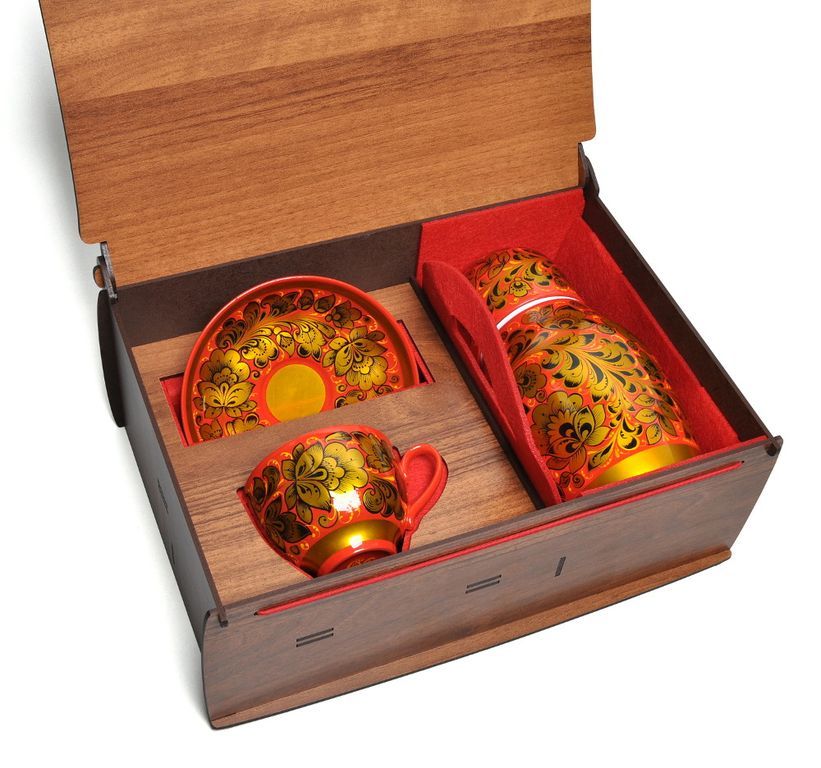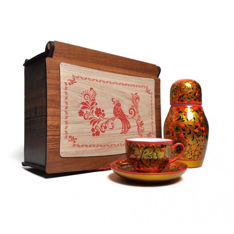 Набор с традиционной РУЧНОЙ росписью "Хохлома". Посуда изготовлена в Германии из высококачественного фарфора. Термос оснащен металлической колбой (что упрочняет конструкцию), а также профессиональными силиконовыми прокладками. Авторская роспись выполняется мастерами в России.