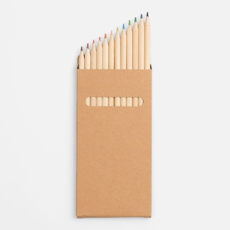 12 цветных карандашей в картонной коробке с окошком.