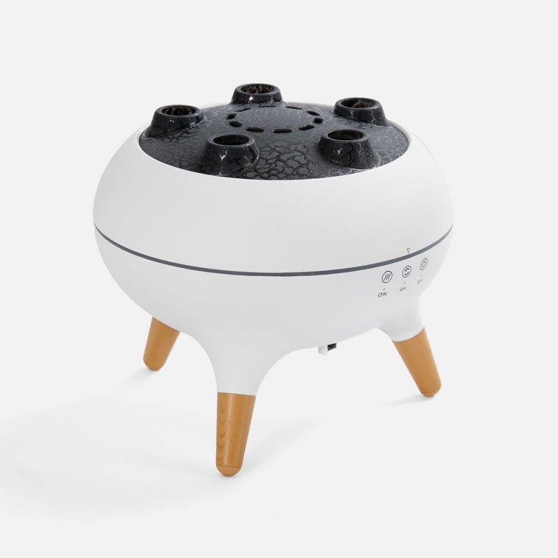 Помимо стандартных струек пара посередине крышки, Cloudini умеет выпускать маленькие облачка влажного воздуха из 5 отверстий по окружности поочередно или динамически — в такт музыке. Устройство реагирует на звуковые колебания и выстраивает интенсивность распыления в зависимости от мелодии.
