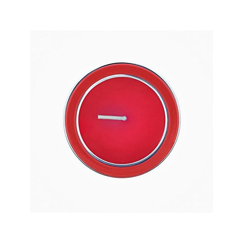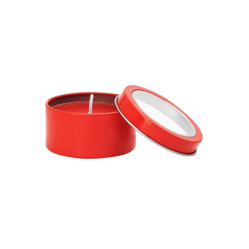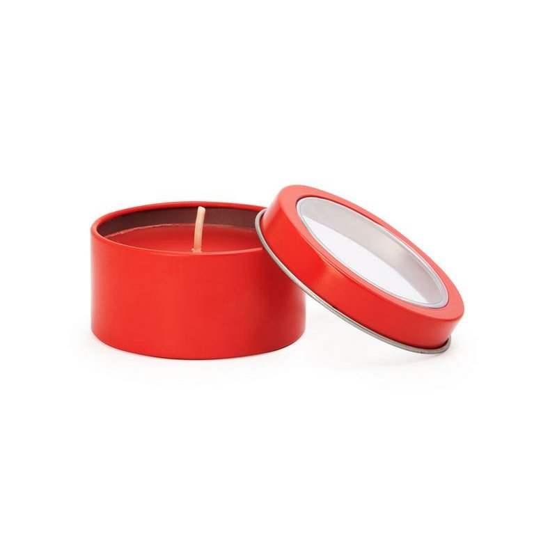 Ароматическая свеча с запахом ванили в металлическом круглом подсвечнике с крышкой с прозрачным окошком. Цвет свечи в тон подсвечника. белый фитиль