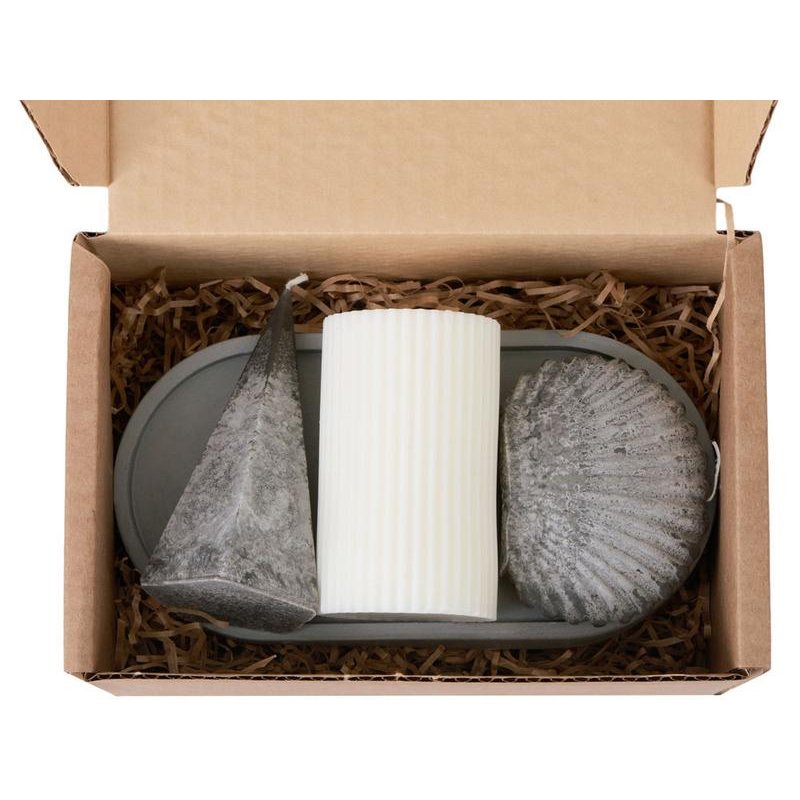 - Комплектность:свеча столбик, свеча пирамида, свеча ракушка, подставка гипсобетон, упаковочный материал