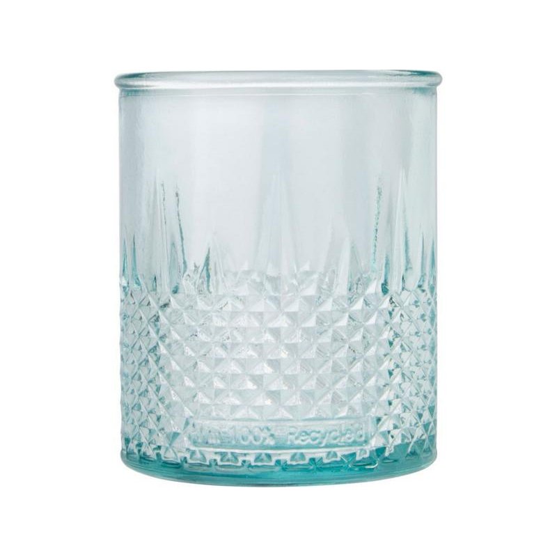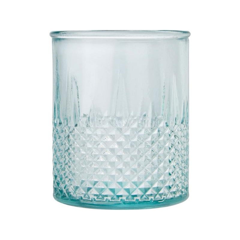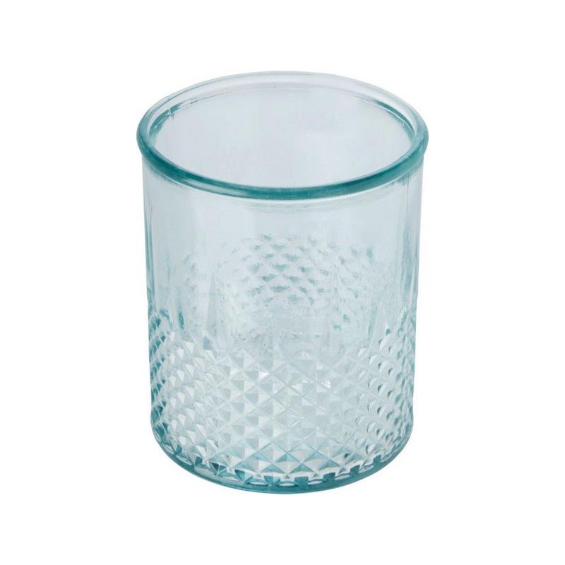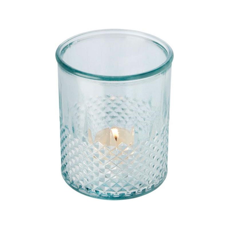 Подставка для чайной свечи из переработанного стекла с алмазным рельефом. Для создания этой подставки была использована 1 стеклянная переработанная бутылка. Переработанное стекло не отличается ничем по качеству от обычного, но при этом является более экологичным, ведь на изготовление этого материала тратится меньше энергии, сырья и примесей. Чайная свеча не входит в комплект.