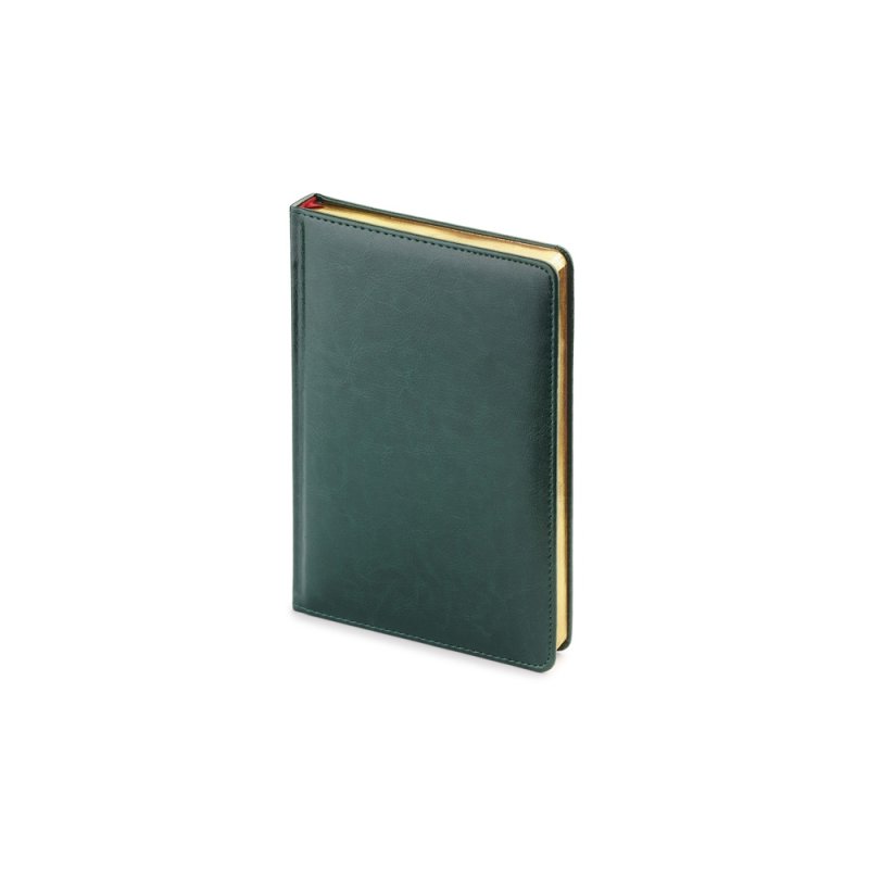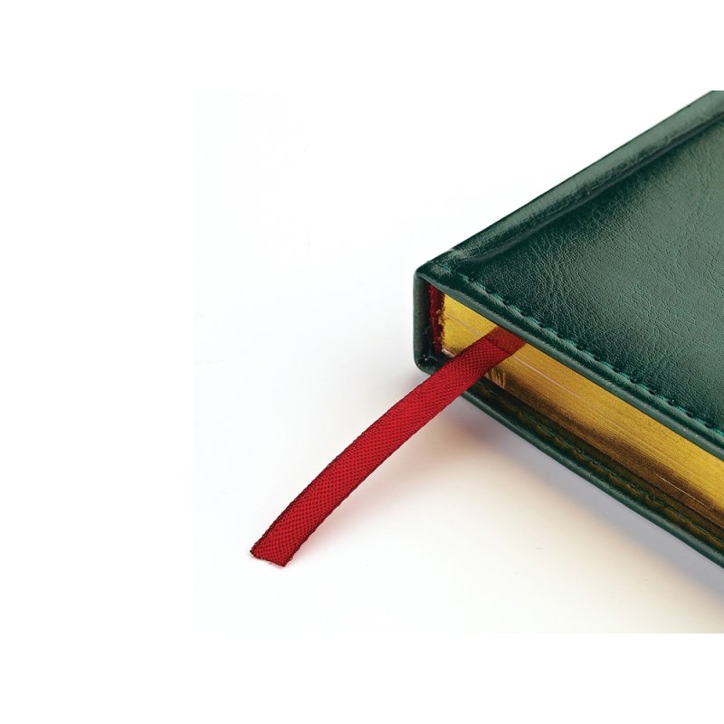 Благородство и статусность придают ежедневнику отстрочка по периметру в тон, скругленные углы, закладка-ляссе бордового цвета, золотой срез.