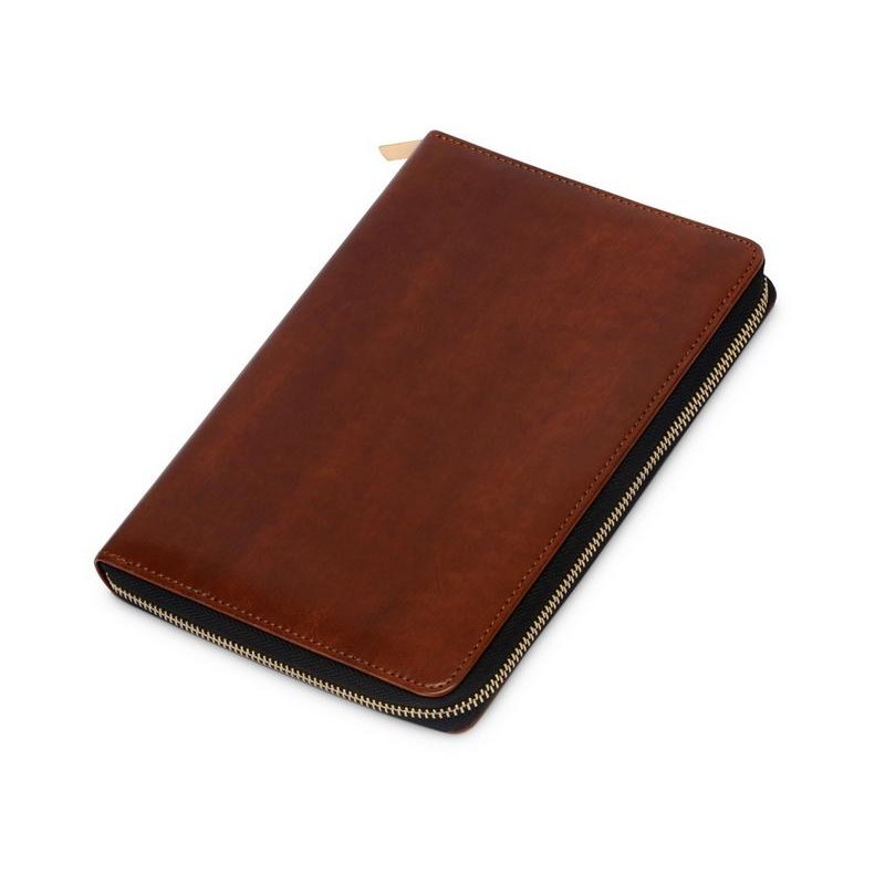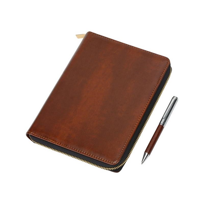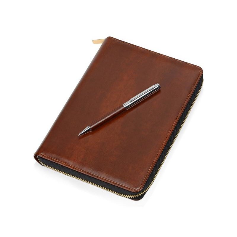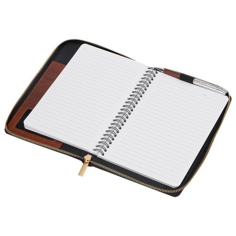 Бизнес блокнот Fabrizio состоит из пенала на молнии выполненного из искусственной кожи, и сменной тетради на 80 листов на кольцах с перфорированными линованными листами белого цвета.