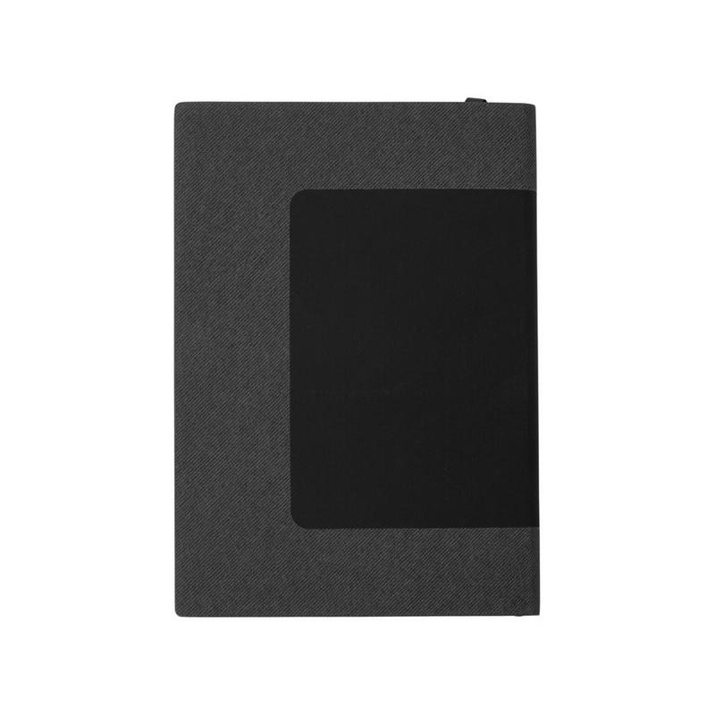 Обложка выполнена из двух видов искусственной кожи: рифленого, в тонкую полоску, основного материала и патча с покрытием софт-тач, который очень приятен на ощупь. Упаковка — шубер из крафта.