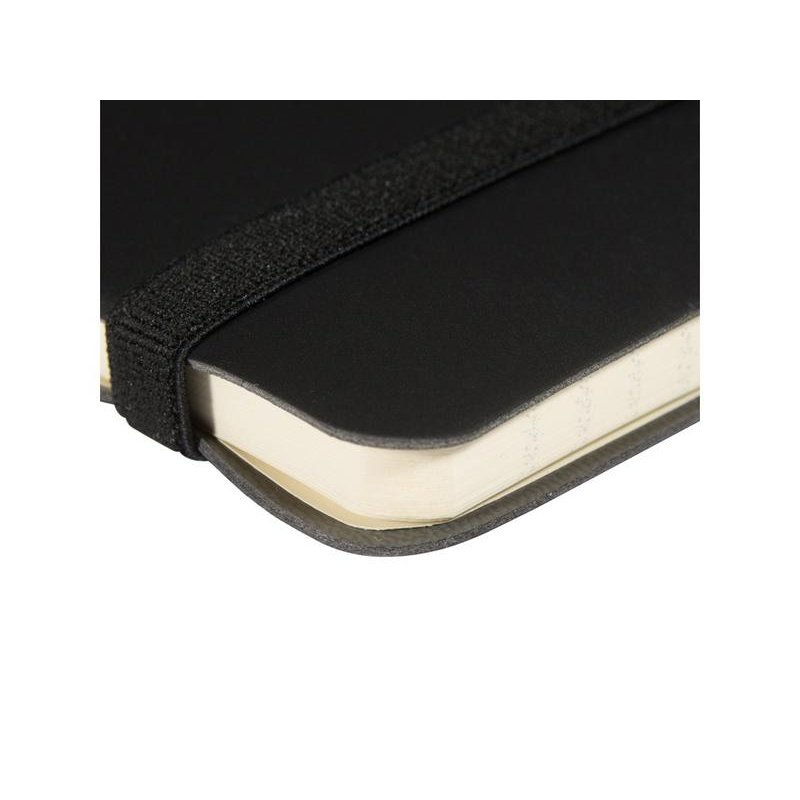 Гибкая (flex) обложка с углами закругленной формы, фиксирующая резинка и ляссе в цвет обложки, петля для ручки и картонный карман для бумаги на внутренней стороне обложки наделяют блокнот практичностью.