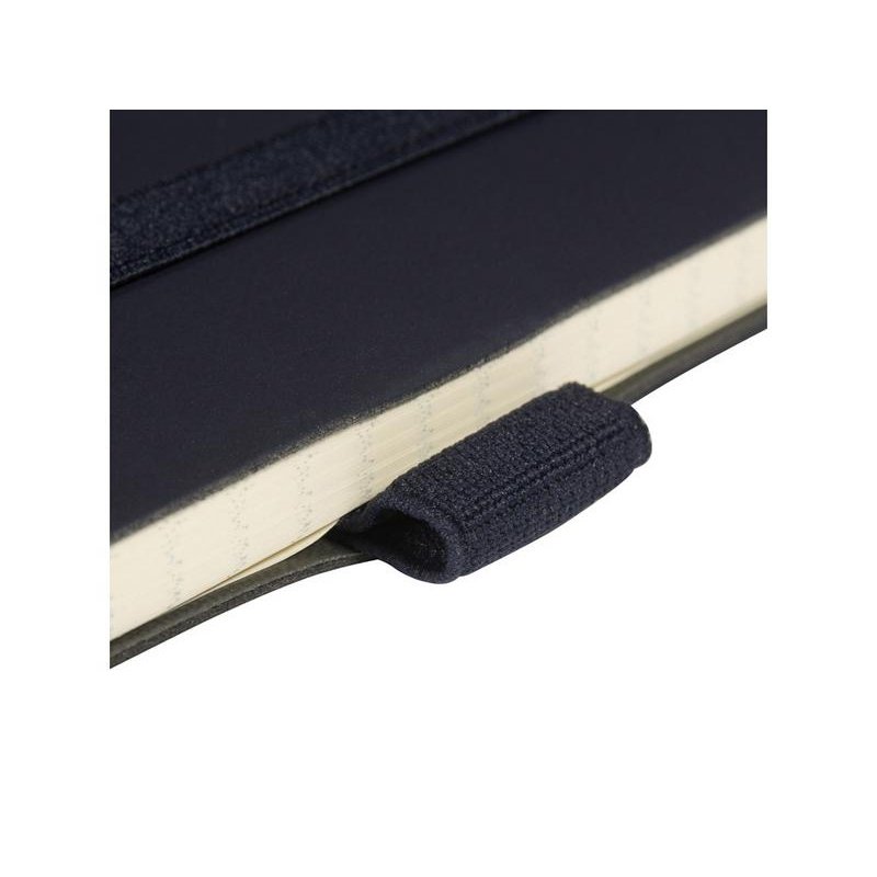 Гибкая (flex) обложка с углами закругленной формы, фиксирующая резинка и ляссе в цвет обложки, петля для ручки и картонный карман для бумаги на внутренней стороне обложки наделяют блокнот практичностью.