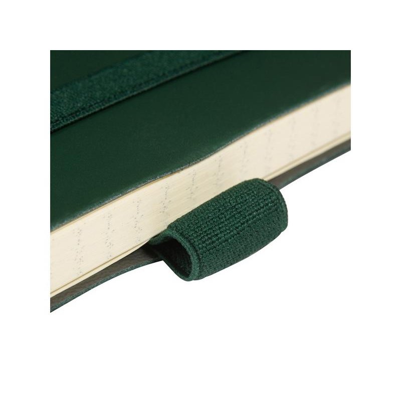 Гибкая (flex) обложка с углами закругленной формы, фиксирующая резинка и ляссе в цвет обложки, петля для ручки и картонный карман для бумаги на внутренней стороне обложки наделяют блокнот практичностью.