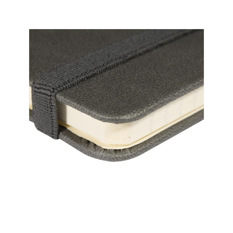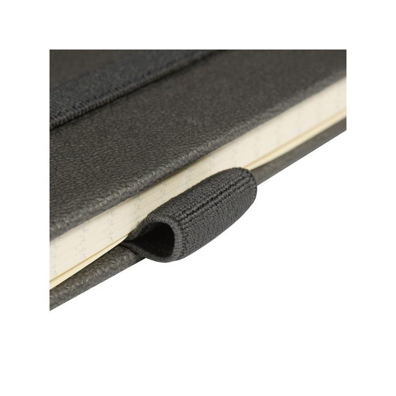Твердая обложка с углами закругленной формы, фиксирующая резинка и ляссе в цвет обложки, петля для ручки и картонный карман для бумаги на внутренней стороне обложки наделяют блокнот практичностью.