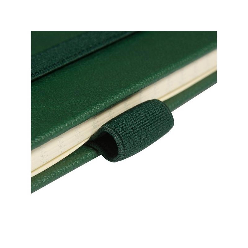 Твердая обложка с углами закругленной формы, фиксирующая резинка и ляссе в цвет обложки, петля для ручки и картонный карман для бумаги на внутренней стороне обложки наделяют блокнот практичностью.