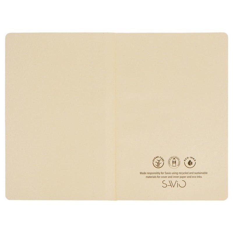 Блокнот, созданный для тех, кто заботится об экологии. Блок и обложка выполнены из переработанного сахарного тростника, а цветной корешок, который может хорошо сочетаться с логотипом, - из переработанного пластика.
