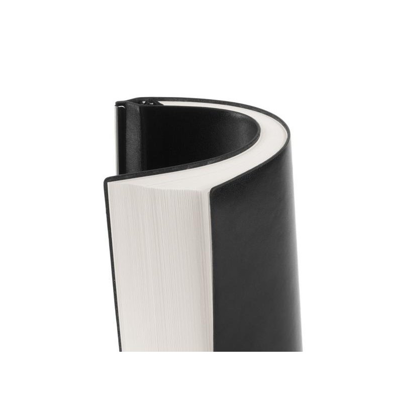 Гибкая обложка выполнена из искусственной кожи, корешок дополнен металлической вставкой.