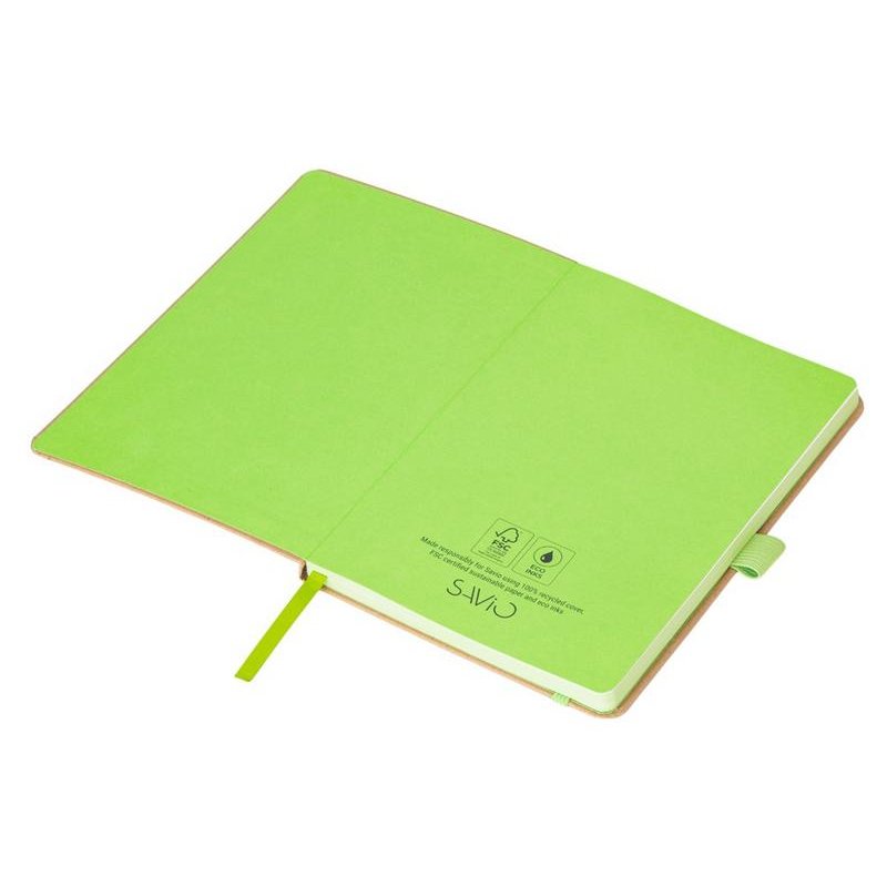 Бумажный блок на 80 листов выполнен из бумаги, полученной из древесины из специальных восполняемых лесных ресурсов, имеет сертификат FSC, международной некоммерческой организации лесного попечительского совета.Линовка - выполнена специальными экочернилами, при изготовлении которых используется меньшее количество энергии.