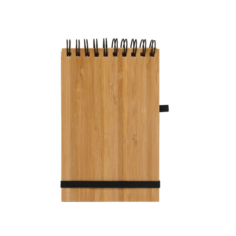 Оригинальный блокнот с обложкой из бамбука и картона, а также блоком из переработанной бумаги. Петля для ручки и горизонтальная резинка расширяют функциональность.