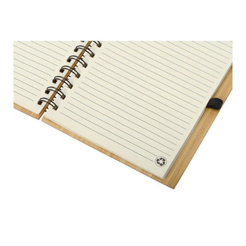 Набор с блокнотом и ручкой изготовлен из экологически чистых натуральных материалов. Обложка блокнота и корпус ручки из натурального бамбука, листы из переработанной бумаги.