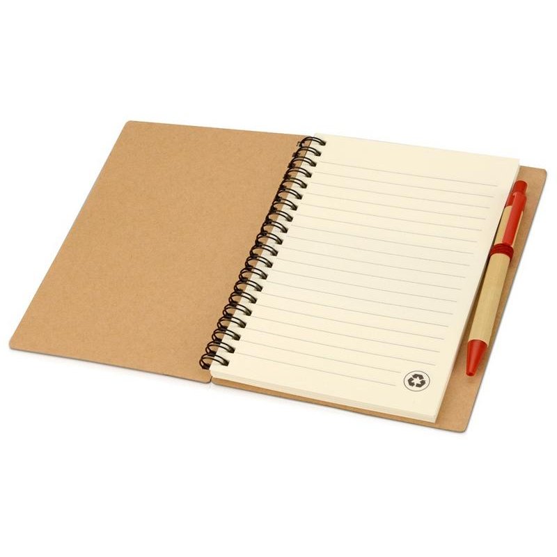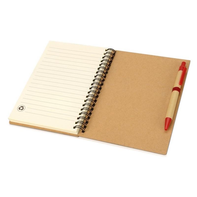 Блокнот с 60 листами переработанной бумаги 70 г/м2 и картонной ручкой в цвет блокнота.