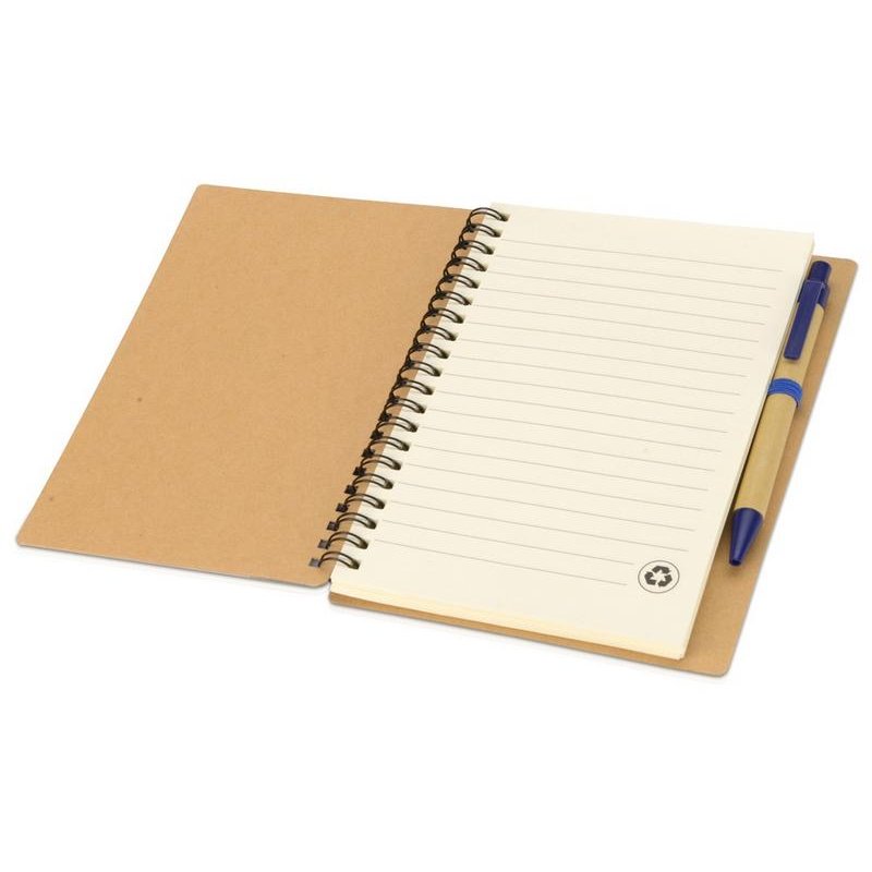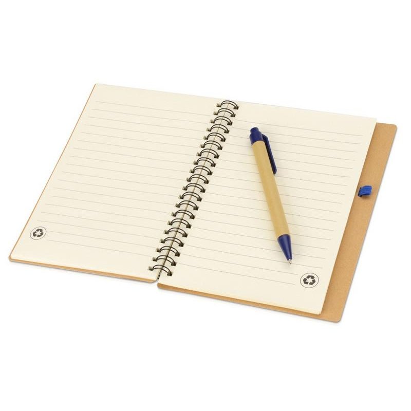 Блокнот с 60 листами переработанной бумаги 70 г/м2 и картонной ручкой в цвет блокнота.