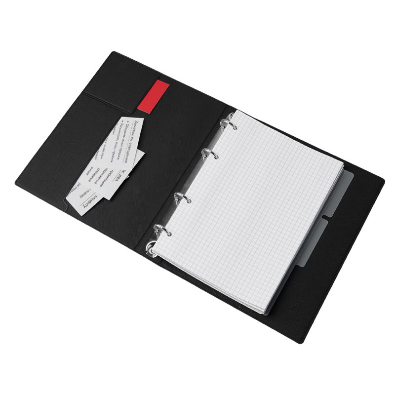 Блокнот Favor на кольцах делает его практически бесконечным в использовании, т.к. листы очень легко меняются и добавляются, а обложка из искусственной кожи делает его очень износостойким.