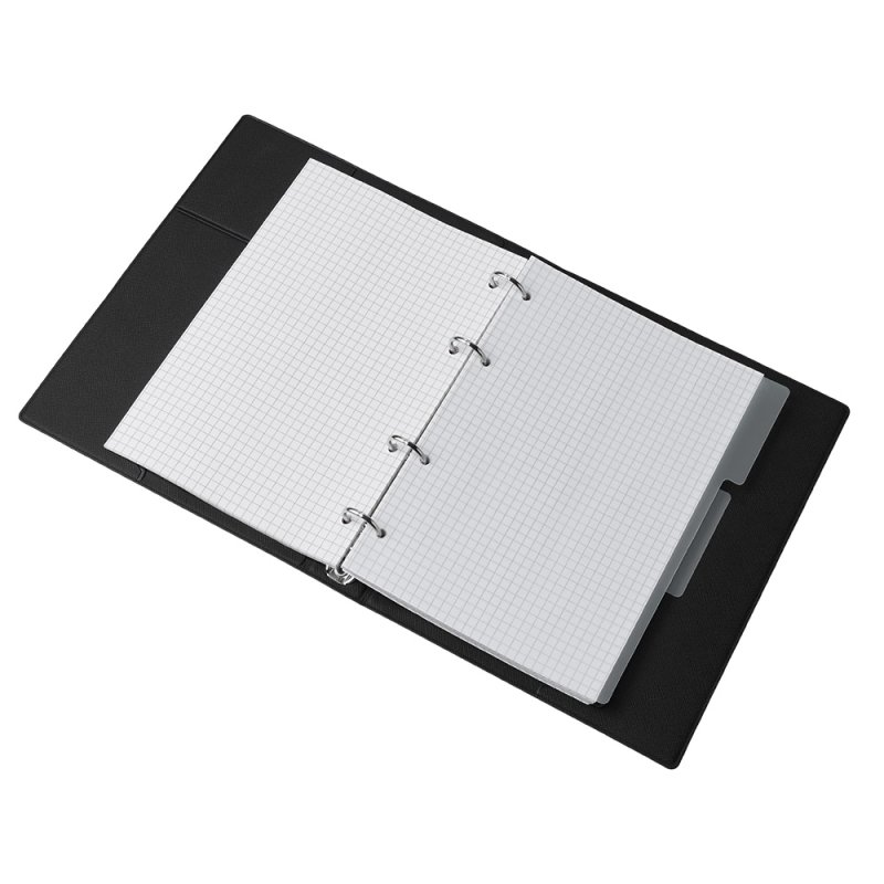 Благодаря кольцам, листки и разделители легко вынимаются и вставляются обратно. В блоке 80 листов бумаги 70 г/м2.