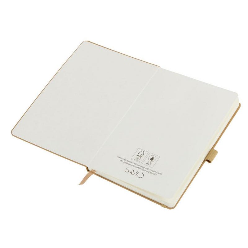 Sevilia от Savio — блокнот с твердой обложкой из крафта, закрывающийся на вертикальную резинку. Для удобства использования предусмотрены ляссе и петелька для ручки, совпадающие по цвету с резинкой.