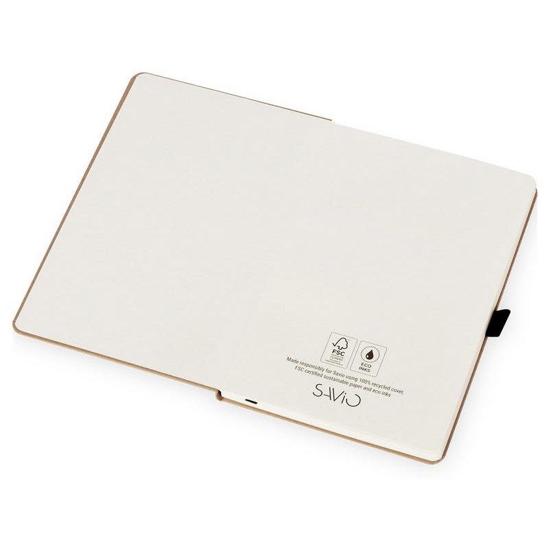 Sevilia от Savio — блокнот с твердой обложкой из крафта, закрывающийся на вертикальную резинку. Для удобства использования предусмотрены ляссе и петелька для ручки, совпадающие по цвету с резинкой.