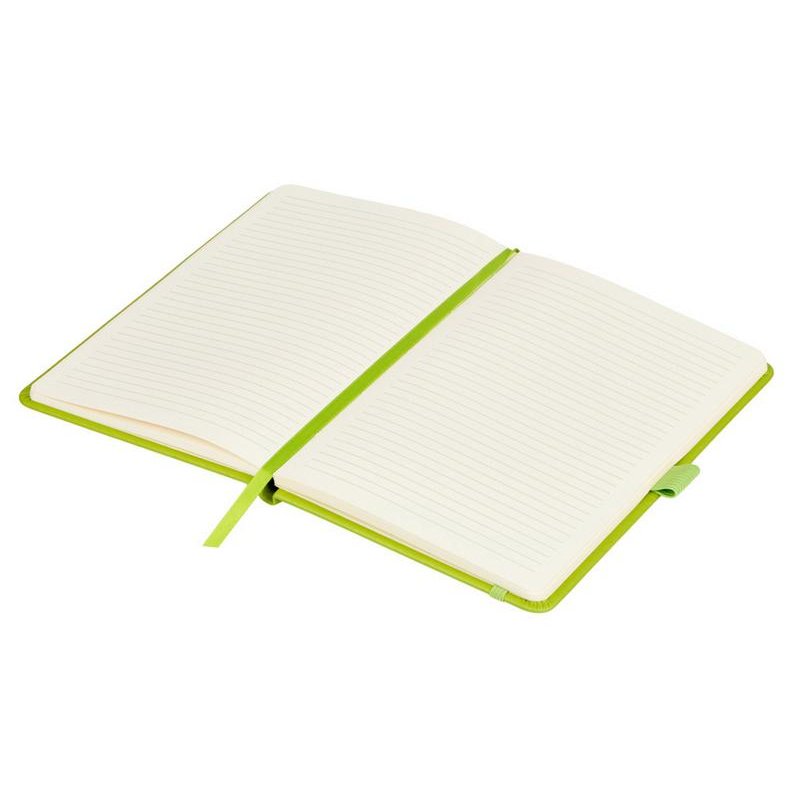 Блокнот в твердой обложке с закругленными углами представлен в широком ассортименте цветов. Внутри 80 листов кремового блока плотностью 70 г/м2 и ляссе в цвет обложки, которая упрощает навигацию по блокноту.