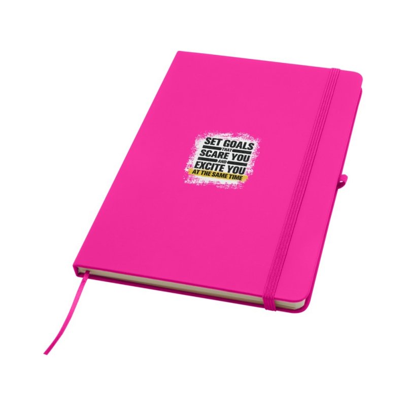 Блокнот Spectrum Plus формата А5 в твердой обложке с закругленными углами — это не только необходимая вещь в офисе, но и прекрасная возможность для продвижения вашего бренда. Картонный блокнот имеет мягкую на ощупь обложку и 80 линованных листов кремового цвета плотностью 70 г/м², идеально подходит для записи быстрых идей или длинных заметок. Блокнот оснащен петлей для ручки, эластичной застежкой, ленточкой-закладкой и карманом-гармошкой.