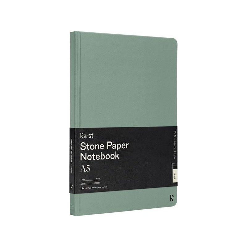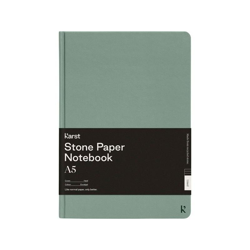 Блокнот в твердом переплете Karst® формата A5 является хитом продаж и любимцем публики. Гладкая поверхность страниц и плоский переплет обеспечивают достаточно удобства и пространства для записи ваших заметок и идей. Имеет эластичный ремешок, позволяющий держать блокнот закрытым, 144 водонепроницаемые и стойкие к разрыву страницы с линовкой, расширяемый задний карман для хранения и закладку с запаянным кончиком и закругленными углами.