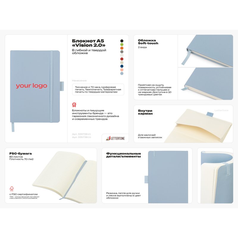 Блокноты Lettertone - это отменное качество и минималистический дизайн. Главной особенностью этих блокнотов является проработка деталей и подбор материалов. У данного варианта блокнота в твердой обложке формата А5 резинка, петля для ручки и ляссе изготовлены в цвет обложки, есть карман для мелочей. Блок из 80 листов плотностью 70 гр/м с сертификатом ответственного лесопользования FSC. Блокнот выполнен из приятного на ощупь и не маркого материала soft-touch.