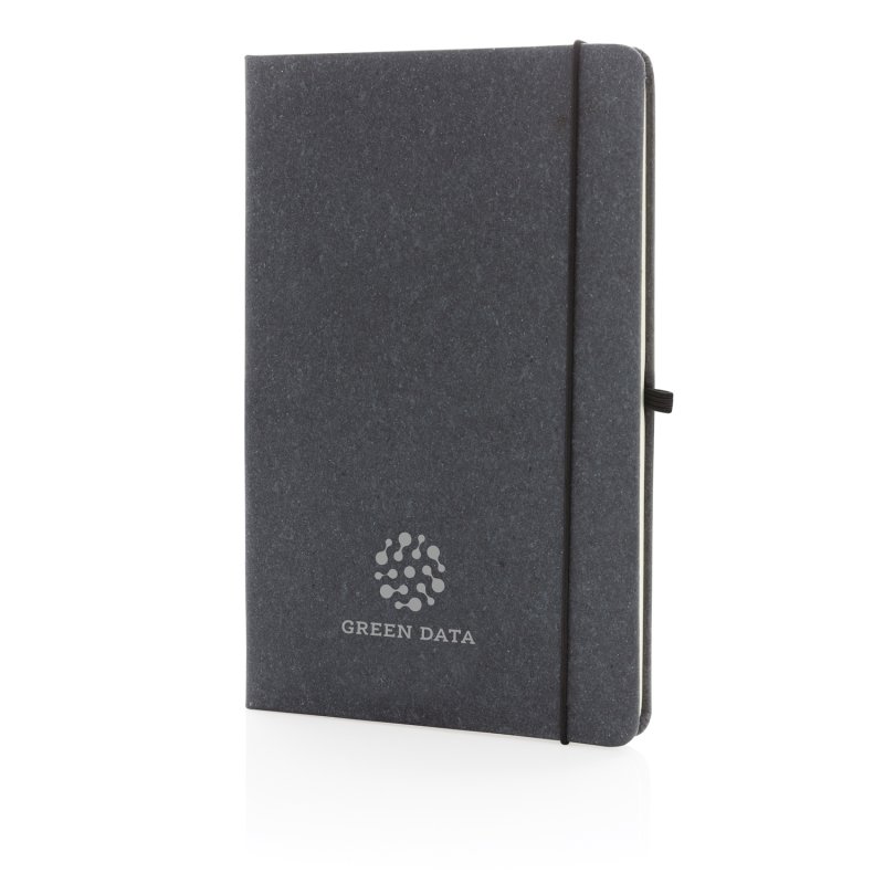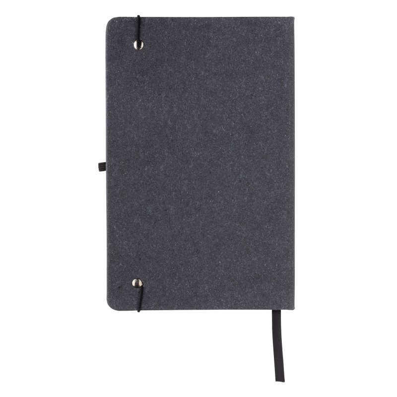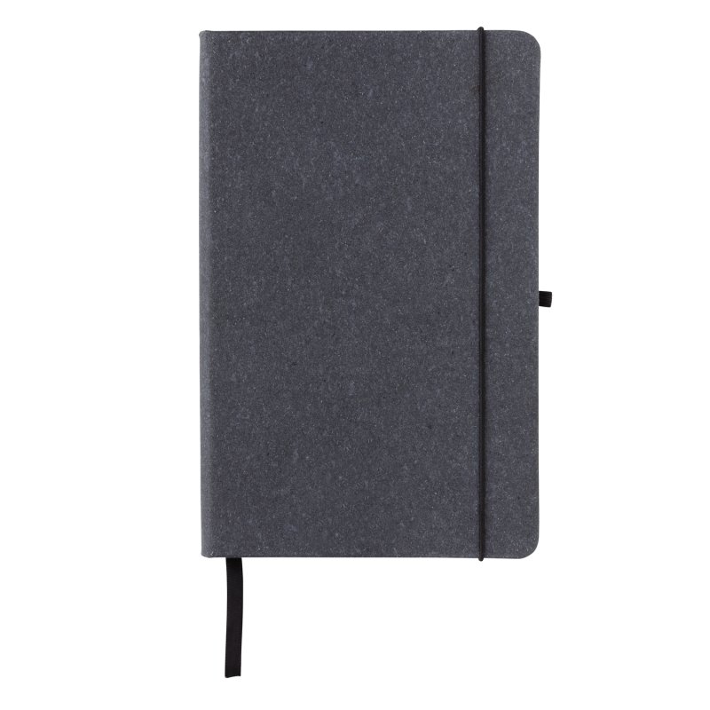 Фиксируйте все свои идеи и планы при помощи стильного блокнота формата А5, сделанного из переработанной кожи. Для записей предусмотрено 80 листов/160 страниц линованной переработанной бумаги белого цвета, плотность 70 г/м2. Закрывается при помощи резинки, есть держатель для ручки.