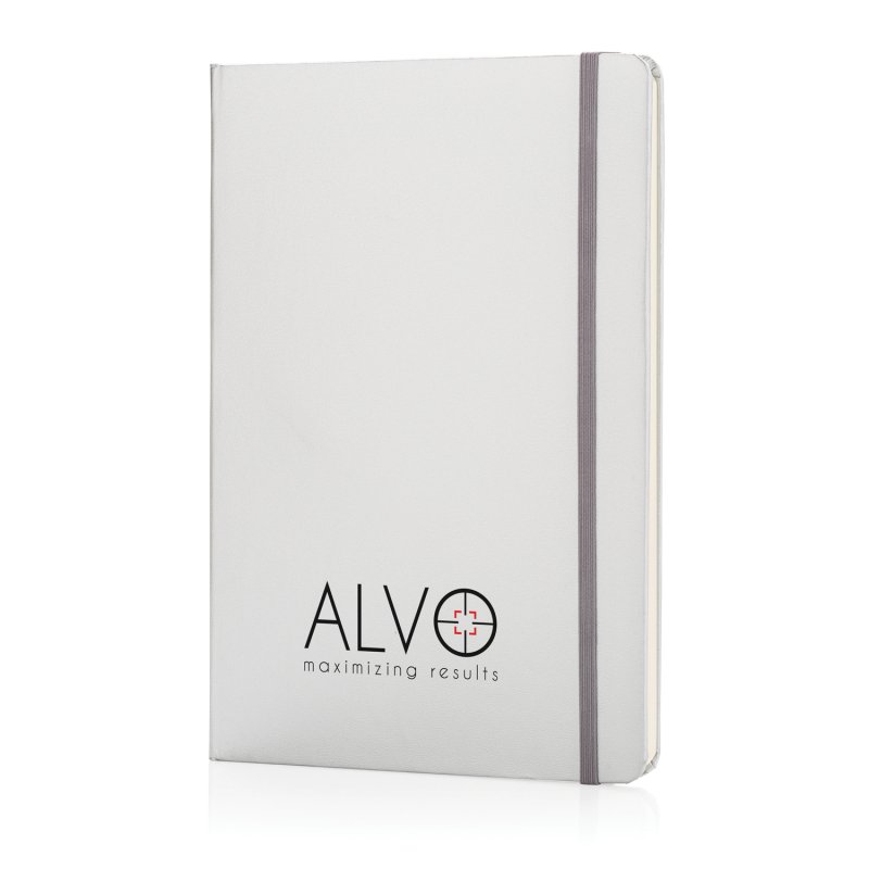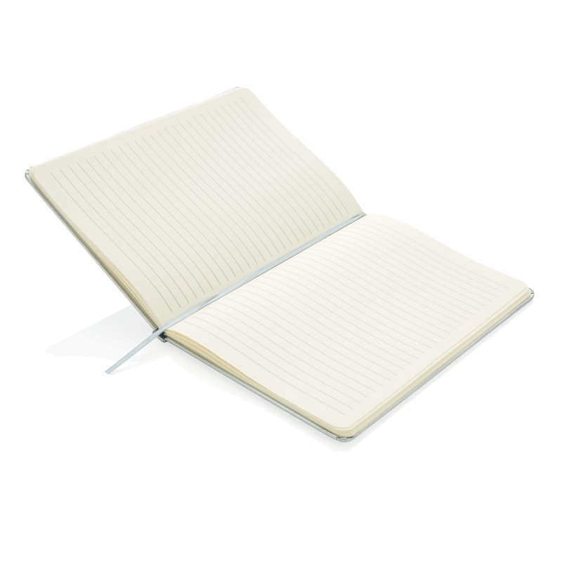 Блокнот для записей Basic в твердой обложке формата А5 на резинке с ляссе. 72 страницы, линованная бумага кремового цвета, плотностью 70 г/м2.