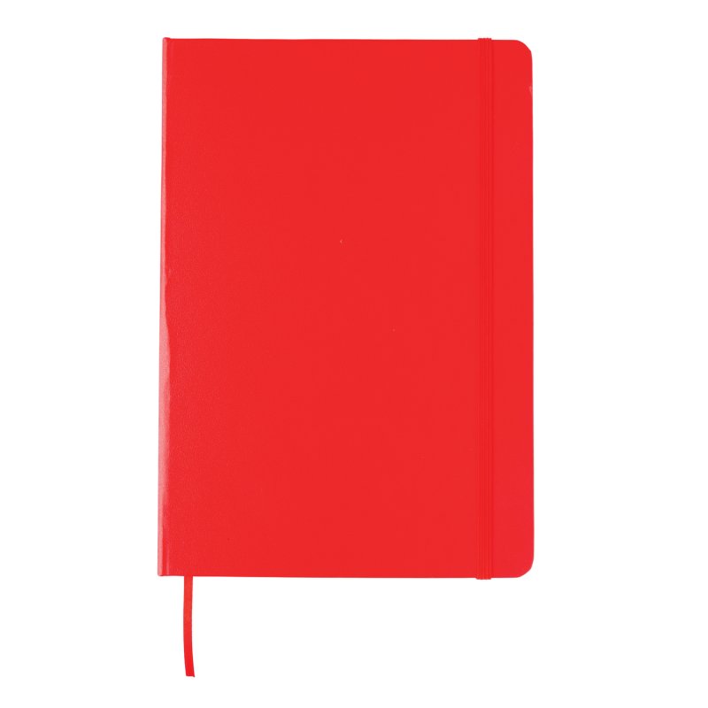 Блокнот для записей Basic в твердой обложке формата А5 на резинке с ляссе. 72 страницы, линованная бумага кремового цвета, плотностью 70 г/м2.