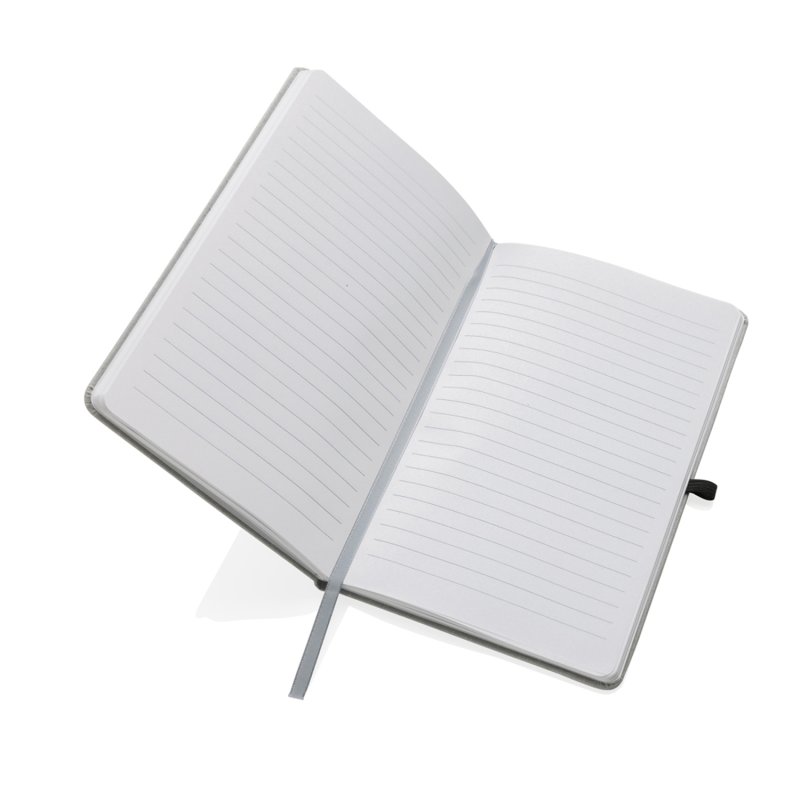 Фиксируйте все свои идеи и планы при помощи стильного блокнота формата А5, сделанного из переработанной кожи. Для записей предусмотрено 80 листов/160 страниц линованной переработанной бумаги белого цвета, плотность 70 г/м2. Закрывается при помощи резинки, есть держатель для ручки.