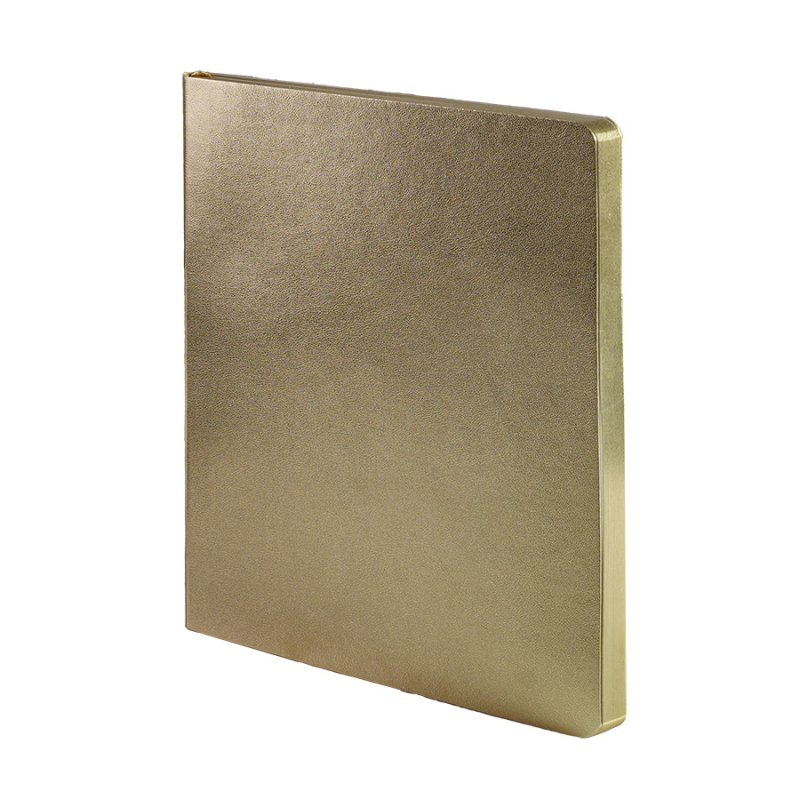 Бизнес-блокнотAURIв золотистом исполнении — сочетание современного делового стиля и премиального дизайна. Мягкий переплёт изнетермоактивного PU‑материалаприятен на ощупь и визуально напоминаетслиток благородного металла.Золотистый обрез страницподчеркивает минималистичный образ, превращая рабочий инструмент в статусный аксессуар.Основные характеристики:Формат: 145×205 ммПереплёт: мягкий, из нетермоактивного PU‑материалаОбрез: золотистый, матовыйБлок: 256 страниц, кремовая эвкалиптовая бумага, плотность 70 г м²Разлиновка: клеткаУглы: скруглённыеЛяссе: ширина 7 ммДополнительно: перфорация на последних страницахУпаковка: черный сливбокс из переработанного картона+ бумагаВнутренний блок обеспечивает комфортное письмо и приятный визуальный контраст с золотистой обложкой. Упаковка защищает изделие при транспортировке и подчёркивает ответственное отношение к экологии.
