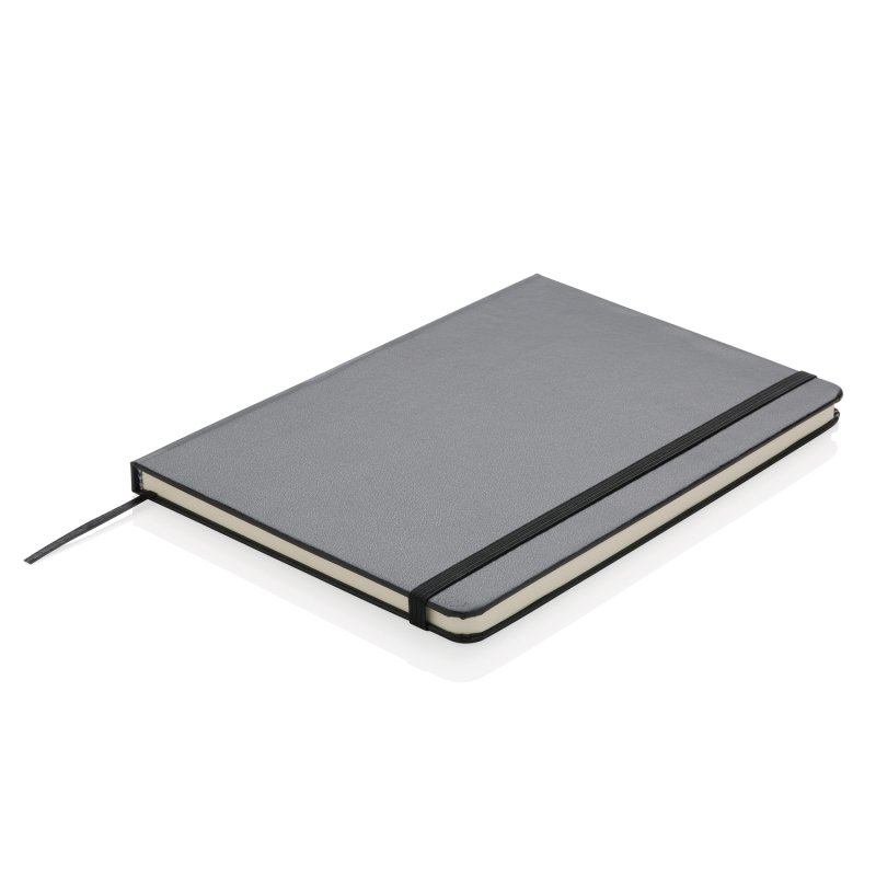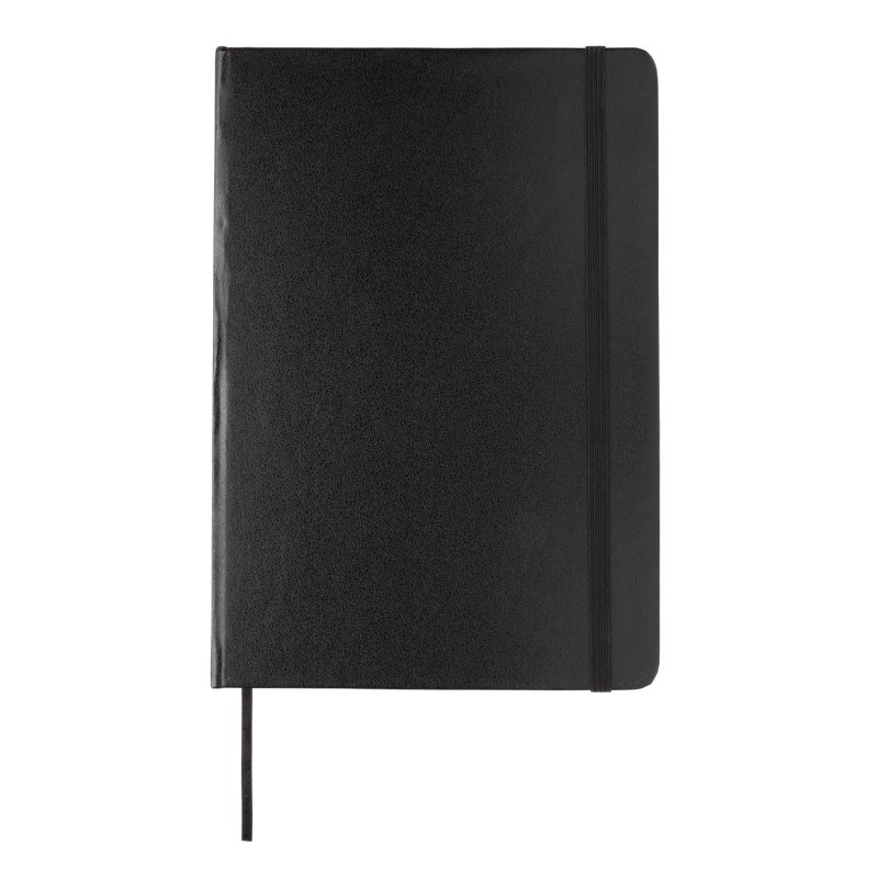 Блокнот для записей Basic в твердой обложке формата А5 на резинке с ляссе. 72 страницы, линованная бумага кремового цвета, плотностью 70 г/м2.