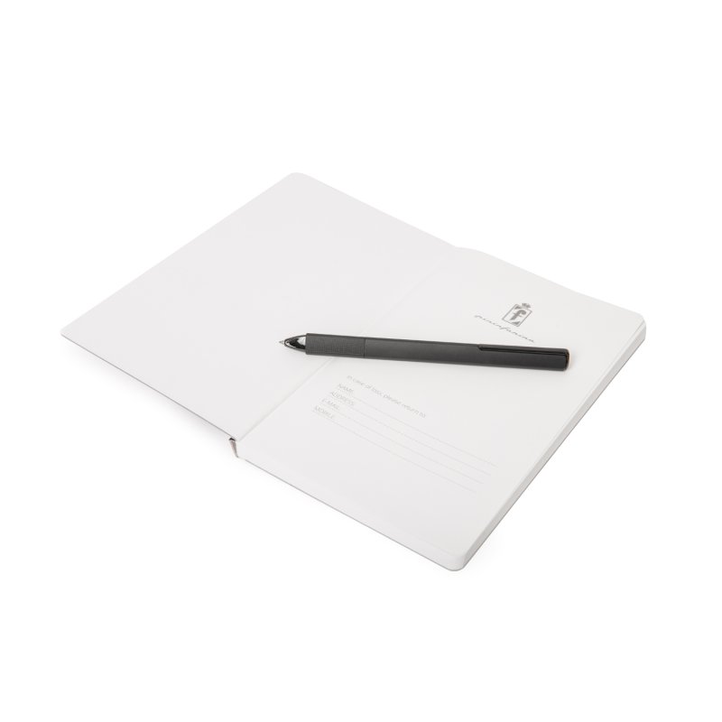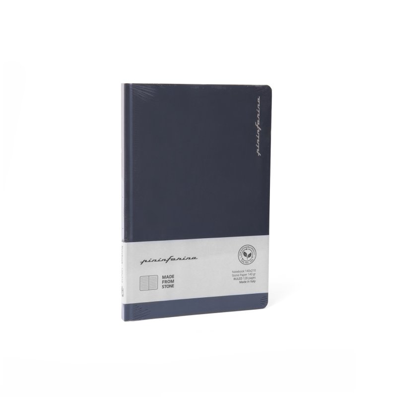 Тетрадь с листами из каменной бумаги. Дизайнеры Pininfarina создали элегантный минималистский дизайн для своего идеального дополнения к линейке вечных ручек Pininfarina Segno, так как именно на каменной бумаге они оставляют очень яркий след. Темно-синяя твердая обложка с покрытием soft-touch фиксируется резинкой того же цвета. Тетрадь размером А5 (14х21 см) содержит 64 листа в линейку. Листы сделаны из каменной бумаги, экологической альтернативы обычной целлюлозной бумаге, которая не требует вырубки деревьев, использования воды и агрессивных химических веществ, тем самым защищая окружающую среду. Она состоит из 80% камня (карбоната кальция) и на 20% из связующего его нетоксичного полиэтилена высокой плотности (HDPE). Это бумага нового поколения с уникальными характеристиками. Каменная бумага на 100% водоотталкивающая, ее можно мыть. Жидкости, включая масло, не изменяют ее структуру, поскольку она не содержит древесных волокон, которые поглощают жидкости, в следствие чего традиционная бумага покрывается пятнами, деформируется и разрушается. Каменная бумага устойчива к разрыву, что также способствует ее долговечности. Она имеет приятный бархатистый эффект и не отражает свет. Плотность бумаги 140 гр/м2. Сделана в Италии.