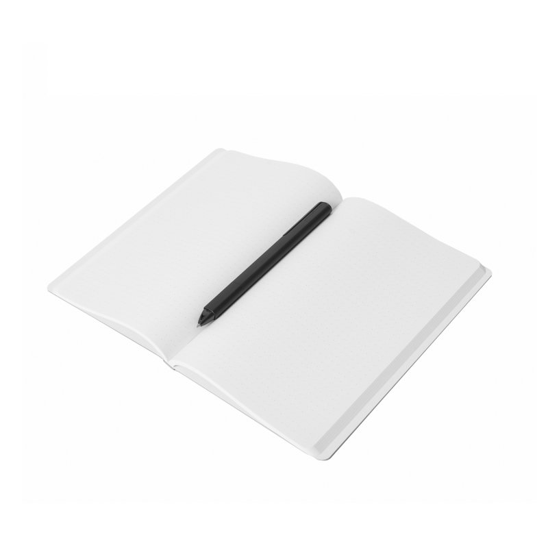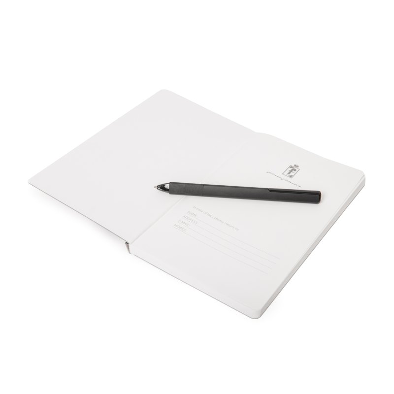Тетрадь с листами из каменной бумаги. Дизайнеры Pininfarina создали элегантный минималистский дизайн для своего идеального дополнения к линейке вечных ручек Pininfarina Segno, так как именно на каменной бумаге они оставляют очень яркий след. Красная твердая обложка с покрытием soft-touch фиксируется резинкой того же цвета. Тетрадь размером А5 (14х21 см) содержит 64 листа в точку. Листы сделаны из каменной бумаги, экологической альтернативы обычной целлюлозной бумаге, которая не требует вырубки деревьев, использования воды и агрессивных химических веществ, тем самым защищая окружающую среду. Она состоит из 80% камня (карбоната кальция) и на 20% из связующего его нетоксичного полиэтилена высокой плотности (HDPE). Это бумага нового поколения с уникальными характеристиками. Каменная бумага на 100% водоотталкивающая, ее можно мыть. Жидкости, включая масло, не изменяют ее структуру, поскольку она не содержит древесных волокон, которые поглощают жидкости, в следствие чего традиционная бумага покрывается пятнами, деформируется и разрушается. Каменная бумага устойчива к разрыву, что также способствует ее долговечности. Она имеет приятный бархатистый эффект и не отражает свет. Плотность бумаги 140 гр/м2. Сделана в Италии.