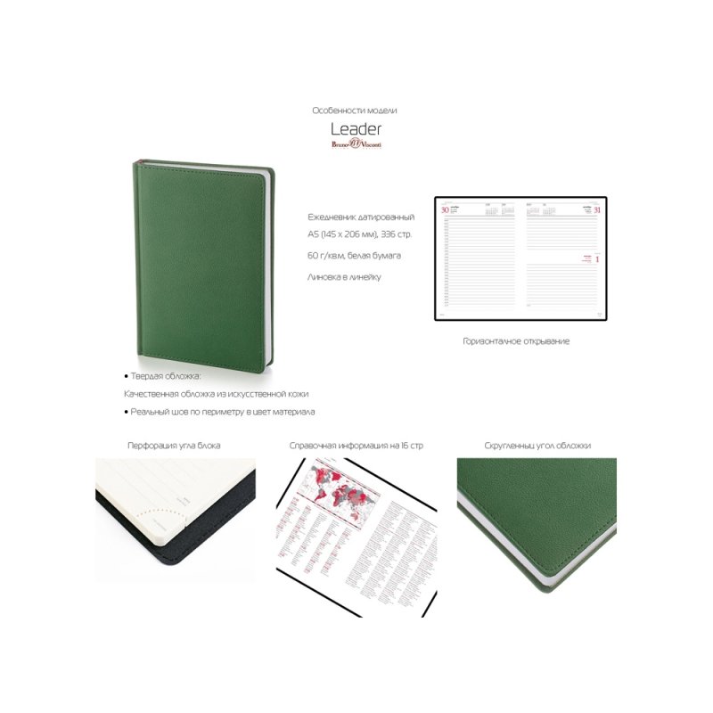 Датированный ежедневник Альт серии LEADER станет вам незаменимым помощником.Обложка ежедневника со скруглёнными уголками выполнена из искусственной кожисо строчкой по периметру в цвет. Переплет блока книжный. Блок произведен из бумаги плотностью 60 г/м2. Страницы белые с двухцветной печатью. Углы блока перфорированные.Есть страница для личных данных, 16 страниц справочной информации . Ляссе блока бордовое 6 мм.