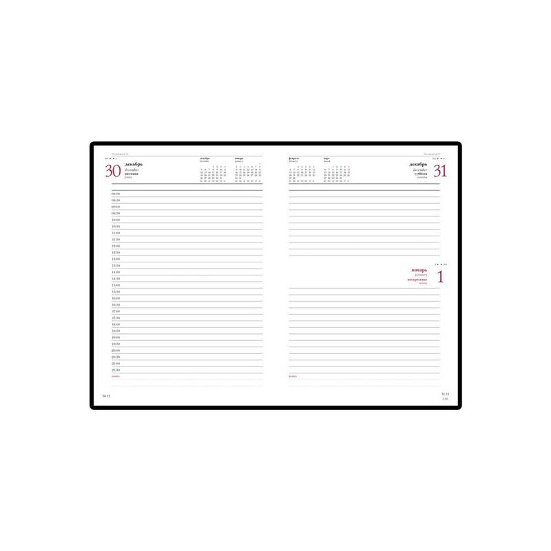 Благородство и статусность придают ежедневнику отстрочка по периметру в тон, скругленные углы, закладка-ляссе бордового цвета, золотой срез.