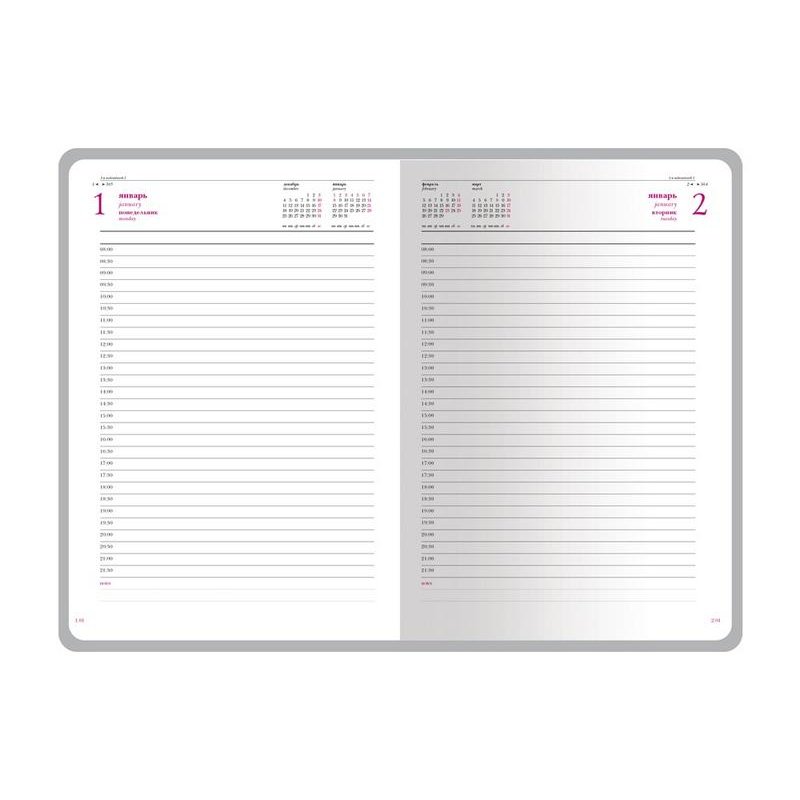 Благородство и статусность придают ежедневнику отстрочка по периметру в тон, скругленные углы, закладка-ляссе бордового цвета, золотой срез.