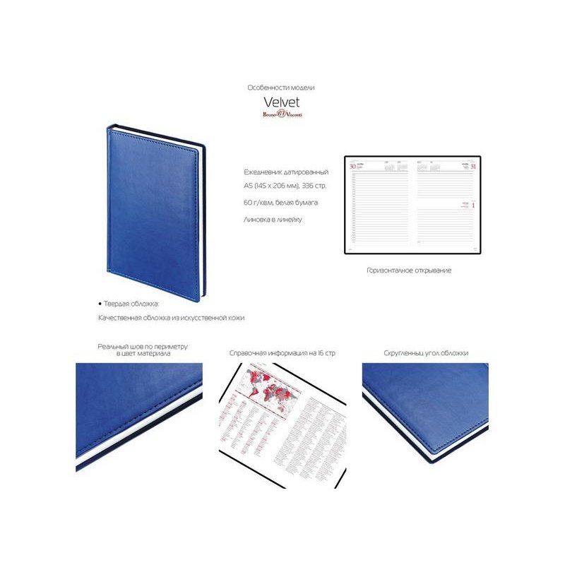 Переплет блока книжный. Цвет страниц белый с двухцветной печатью. Есть страница для личных данных, 16 страниц справочной информации, 19 страниц телефонного справочника и календарь на 2025-2026 года.Стандартный размер блока А5 (140 Х 200 мм).