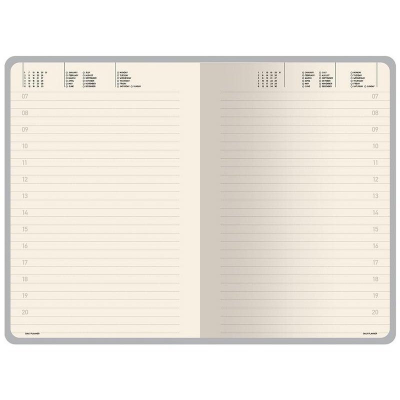 Недатированные страницы в серую линейку имеют отдельное место для проставления числа месяца и дня недели. Справочный блок на 17 страницах содержит полезную информацию из различных областей.