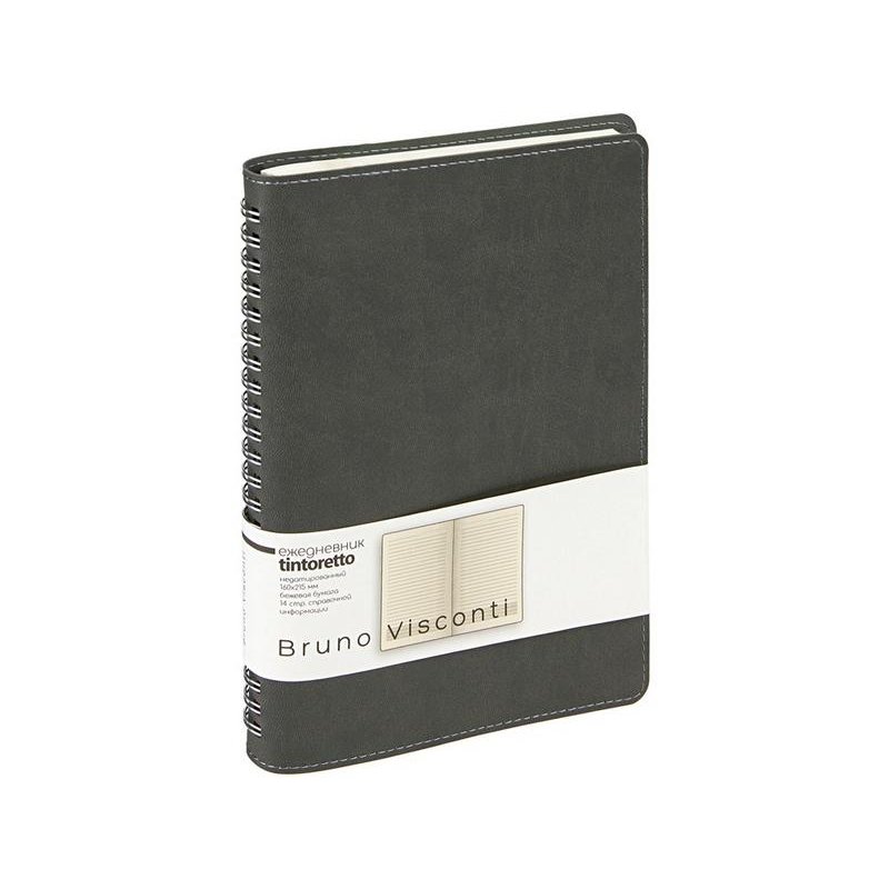 Недатированный ежедневник формата А5 Tintoretto ТМ Bruno Visconti - практичное решение для тех, кто любит ежедневники на пружине. Полускрытый гребень позволяет держать ежедневник открытым на столе и комфортно вести записи. 272 страницы блока произведены из превосходной бежевой бумаги плотностью 70 г/кв.м, а неброская линовка каждой страницы позволяет не отвлекаться на лишние детали. Гибкую обложку из искусственной кожи украшает отстрочка декоративной нитью по краю.