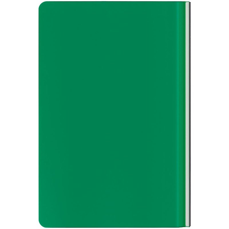 Ежедневник с гибкой обложкой и металлическим корешком, выполнен из материала Soft Touch Ultra, зеленый FF, дополнен серебристым обрезом блока и ляссе.