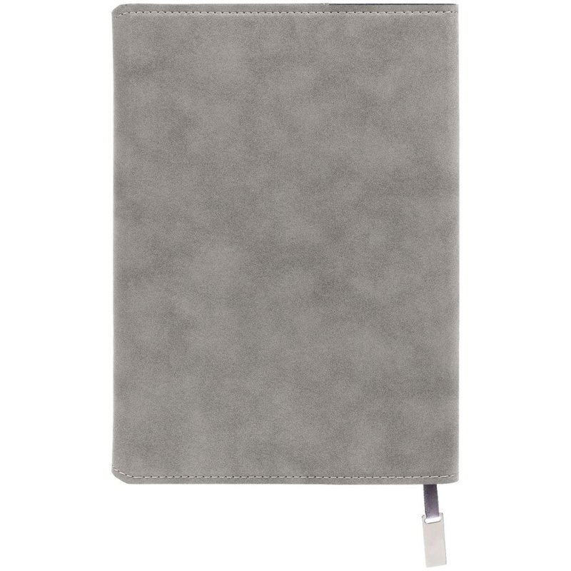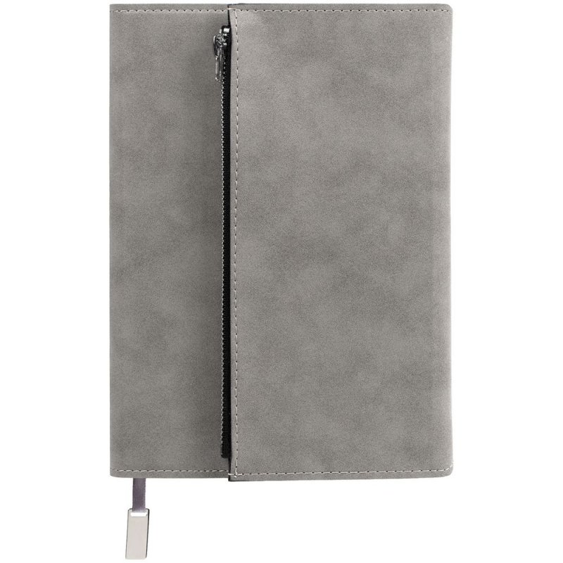 Ежедневник в гибкой суперобложке c карманом на молнии, выполнен из материала Nubuck, серый СС. Дополнен капталом и металлической шильдой на ляссе серого цвета.